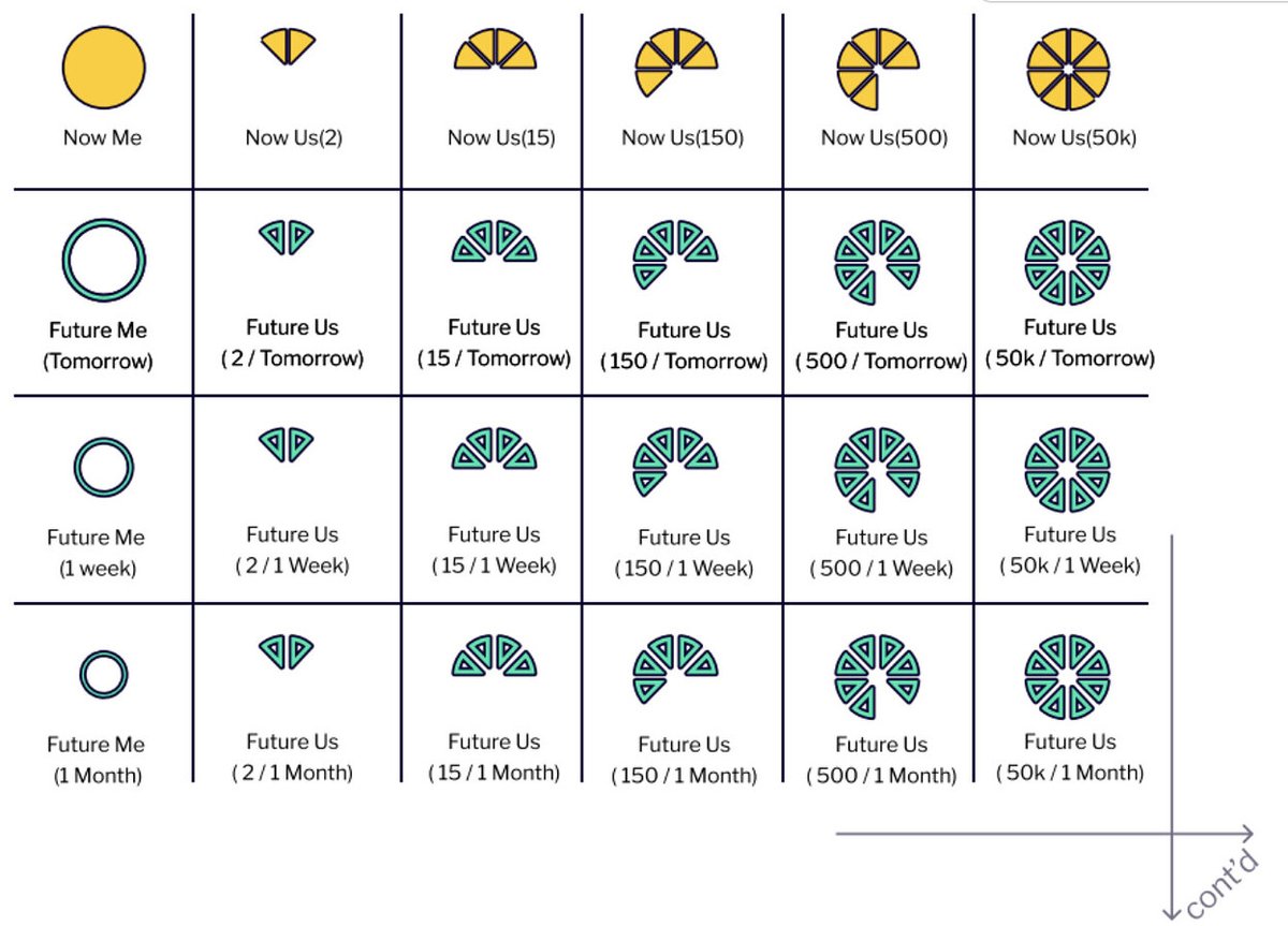Traditional Bento Boxes contain 4 cells: Now Me, Now Us, Future Me, Future Us. This concept could be further extended with more granularity.