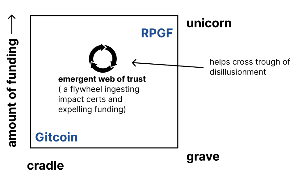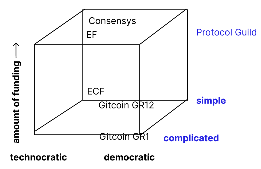 As a shape rotator is where things get interesting to me. As people begin launching projects that are empirically effective at funding what matters to them, we can start to build a 1, 2, 3 dimensional... up to n-dimensional space of what the design space looks like.